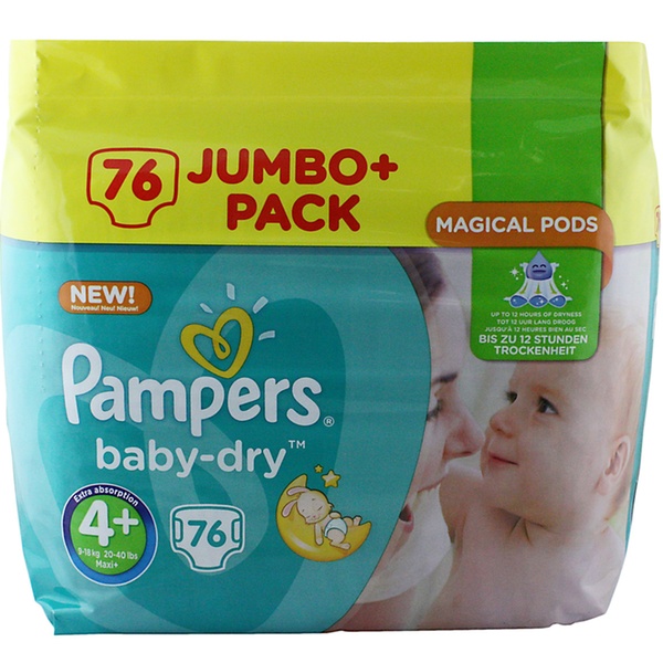 - 1x Pampers Baby Dry Größe 4+, 76 St (76 Stück) (Grundpreis: 1 St = 0,22 €)