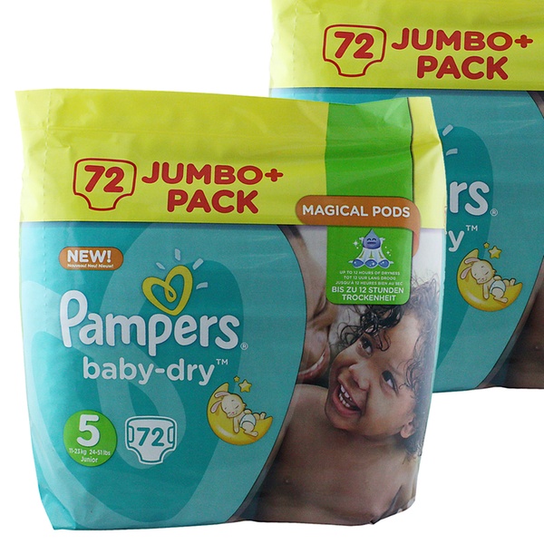 - 2x Pampers Baby Dry Größe 5, 72 St (144 Stück) (Grundpreis: 1 St = 0,22 €)