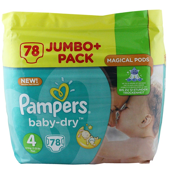 - 1x Pampers Baby Dry Größe 4, 78 St (78 Stück) (Grundpreis: 1 St = 0,21 €)