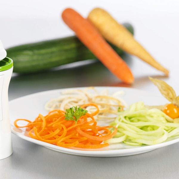 Spülmaschinenfestes Schneidegerät im modernen Design zur Herstellung von Low-Carb-Pasta, feinen Spiralen und breiten Streifen