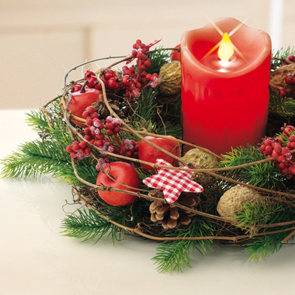 Festlicher Schmuck ganz ohne offene Flamme, Ruß oder heißes Wachs, mit weihnachtlicher Dekoration, Timer-Funktion und Batterien