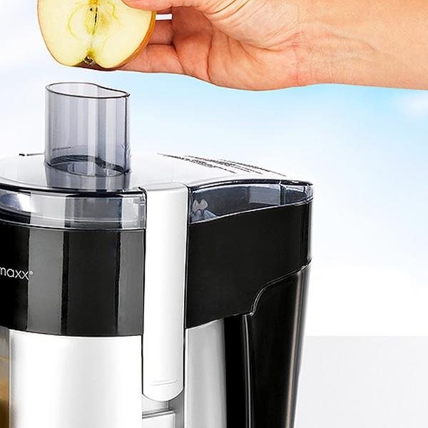 Praktischer und kompakter Entsafter mit einer Leistung von 400 Watt zum Herstellen von frischen Säften daheim