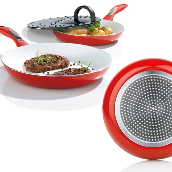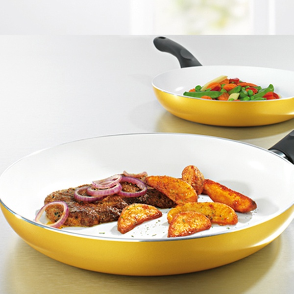 Kratz- und stoßunempfindliche Pfannen mit 2-facher Keramikbeschichtung und Wärmeleitboden für energiesparendes Braten ohne Anbrennen