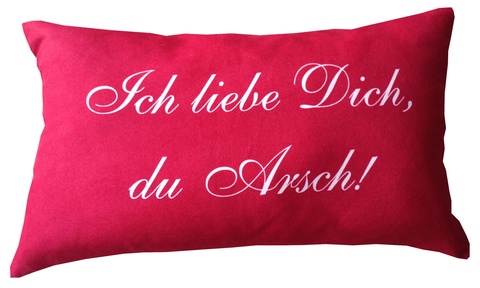 - Kissen mit Spruch „Ich liebe Dich, Du Arsch“ für 13,90 €