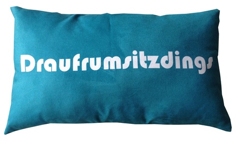 - Kissen mit Spruch „Draufrumsitzdings“ für 13,90 €