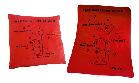 - Set aus „Hab Dich lieb Kissen“ und „Hab Dich lieb Decke“ für 17,90 €
