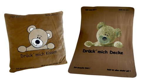 - Set aus „Drück’ mich Kissen“ und „Drück’ mich Decke“ für 17,90 €