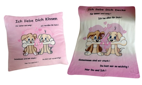 - Set aus „Ich liebe Dich Kissen“ und „Ich liebe Dich Decke“ für 17,90 €