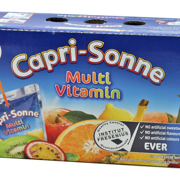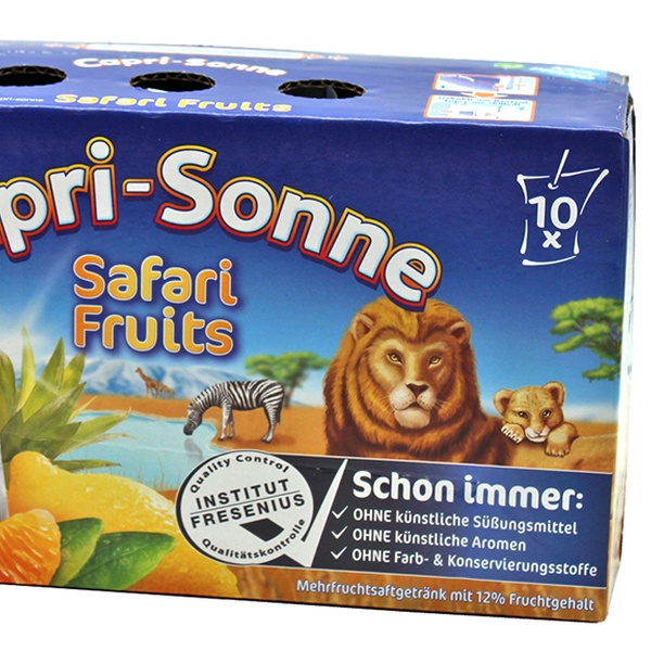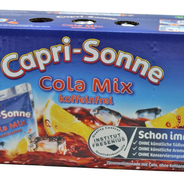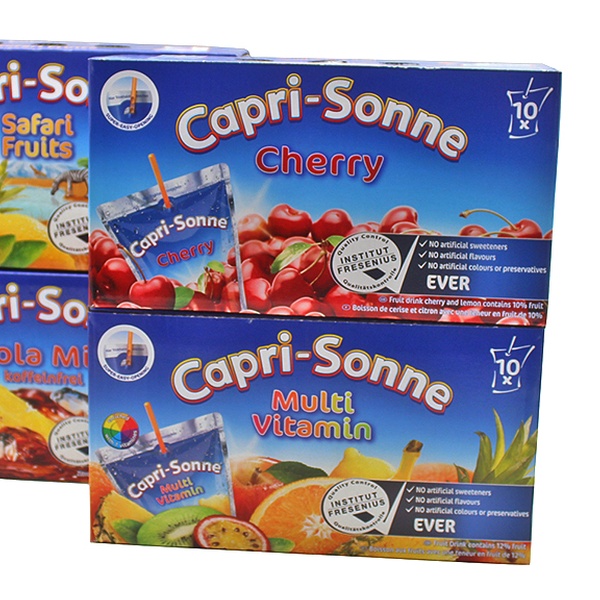 80 Päckchen mit je 0,2 l erfrischender Capri Sonne in den beliebten Sorten Cola, Safari Fruits, Multivitamin und Kirsche