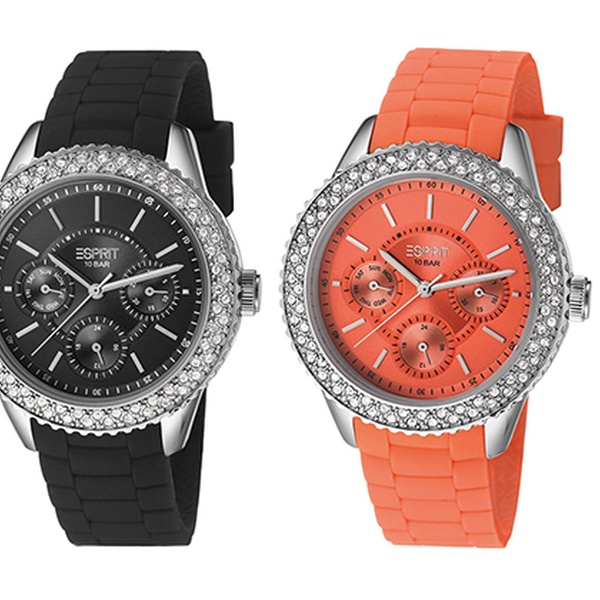 ESPRIT Damen-Chronograph MARIN GLINTS SPEED in Beerenpink (Modell ES106222006), Schwarz (Modell ES106222001), Orange (Modell ES106222004), Limonengrün (Modell ES106222003) oder Lila (/Modell ES106222005) für 59,99 €
