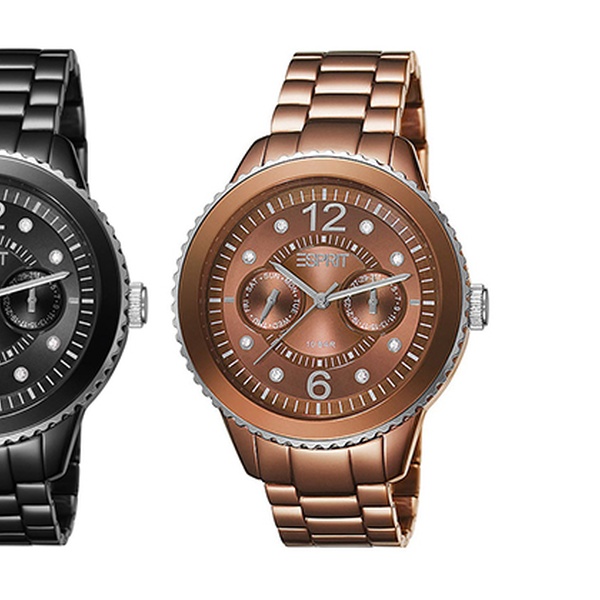 ESPRIT Damen-Multifunktions-Armbanduhr MARIN ALUMINIUM SPEED in Braun (Modell ES105802009) oder Schwarz (Modell ES105802001) für 69,95 €