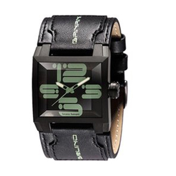 - Zifferblatt: schwarz, hellgrüne Ziffern