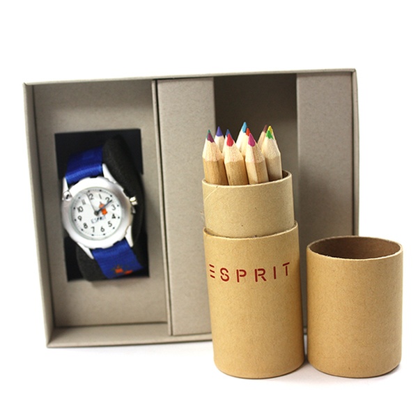 - Lieferung in Geschenkbox, inkl. Buntstifte, Radiergummi und extra Band (Hellblau), Esprit-Schriftzug aus Gummis (Pink und Blau) oder Karabiner (Lila)