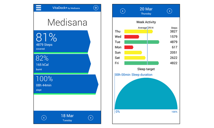 Vielfältige Darstellungs- und Auswertungsmöglichkeiten von Kalorienverbrauch, zurückgelegter Strecke, Aktivitätsdauer und Schlafqualität