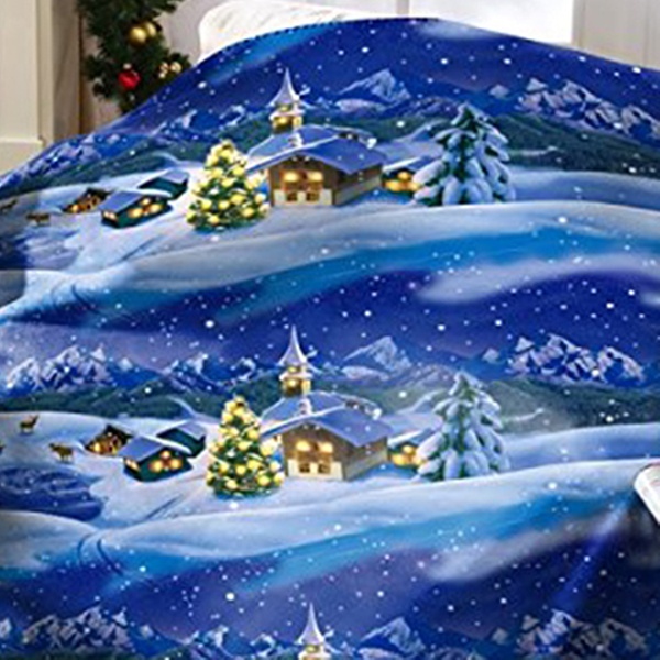 Weihnachtliche Decke mit romantischem Wintermotiv, wunderbar weich und antistatisch aus 100% Polyester, waschbar bei 40° Celsius