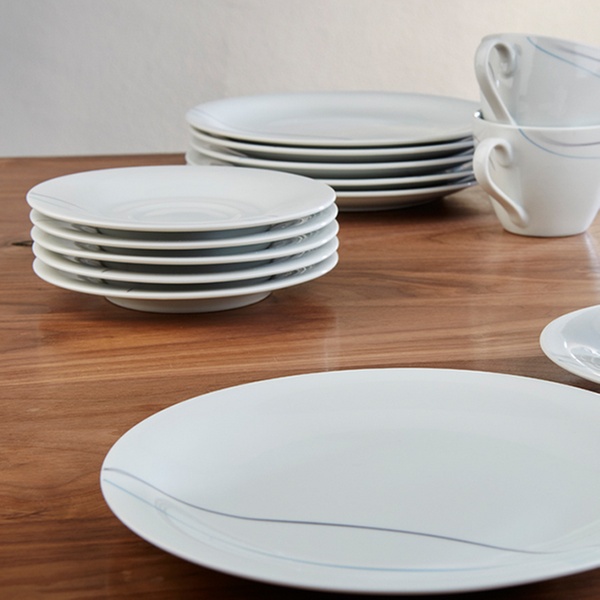 Je sechs Teller, Untertassen und Obertassen, spülmaschinengeeignet und mit schlichtem Design