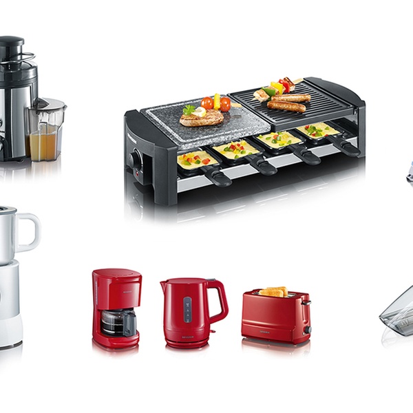 Praktische Haushaltshelfer wie Milchaufschäumer, Entsafter, Eierkocher, Kaffeeautomat, Raclette Grill Handstaubsauger oder Bügelautomat