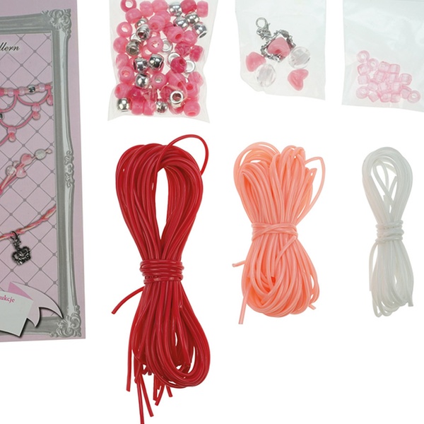 - Verschiedenfarbige Scoubidousschnüre und Kunststoffperlen
