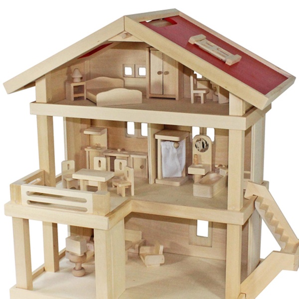 - Detailreiches Puppenhaus aus Holz mit drei Etagen und fünf Räumen