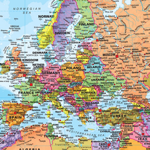 - 1x Politische Weltkarte auf laminierter Leinwand (84 x 59 cm) für 9,95 €