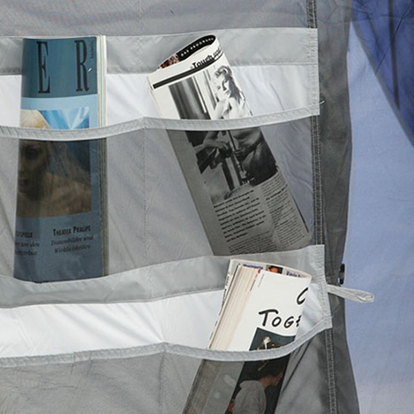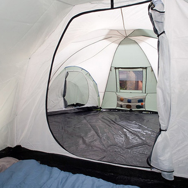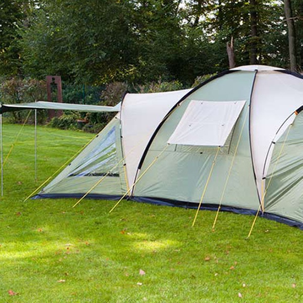 Das geräumige Ferienhaus für die ganze Familie ist einfach aufzubauen und dank Fiberglas-Stahl-Gestänge auch bei stärkerem Wind geeignet
