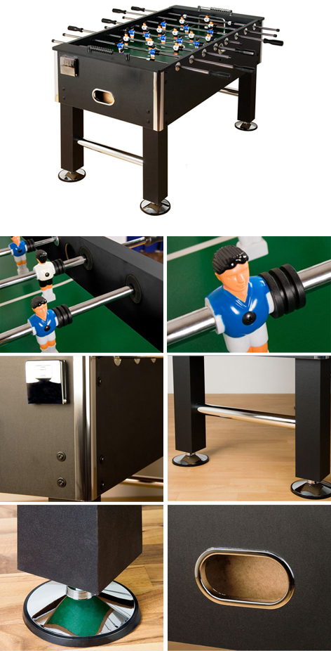 - Stabilisatoren unter dem Spielfeld sowie an den Standbeinen und Standfüssen in Chrom