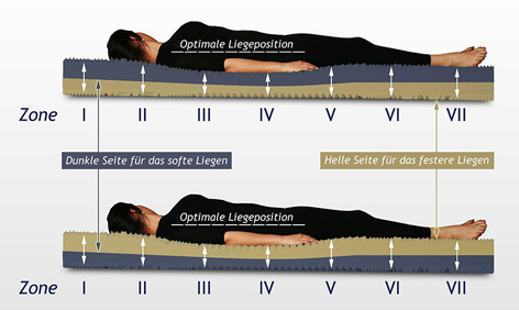 - 7 Liegezonen, angepasst an die Bedürfnisse unterschiedlicher Körperregionen