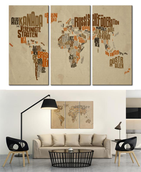 Frankreich, Polen, Deutschland, Spanien, Italien und die Welt einmal ganz anders in Szene gesetzt: Die Wandbilder von murando machen Geografie zu Kunst, und das im Büro, Wohnzimmer und an jedem anderen Ort. Die Leinwanddrucke auf Spannrahmen sind dreiteilig und geben jeder Wohnung internationales Flair.