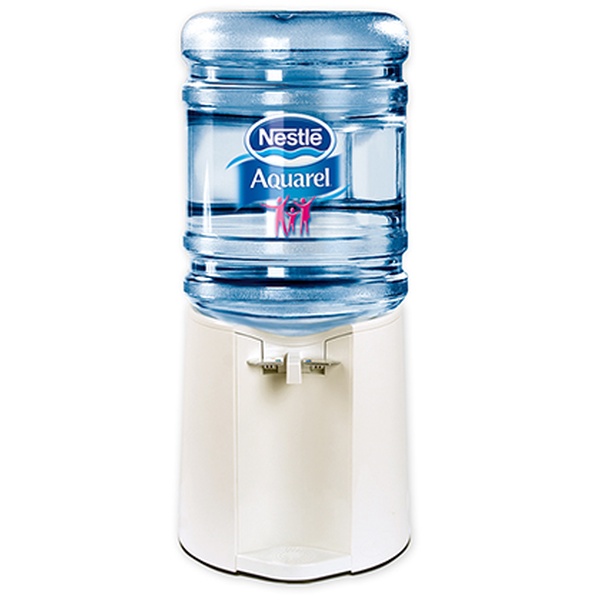 Platzsparendes Tischgerät in Weiß, Grau oder Schwarz; frisches Wasser aus 18,9 Liter Flaschen (inkl. 9,49 € Pfand pro Flasche)