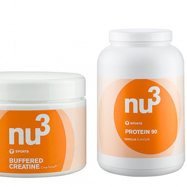 - nu3 Protein 90 Vanille-Pulver und 120 Kapseln nu3 gepuffertes Kreatin plus Shaker für 39,95 €