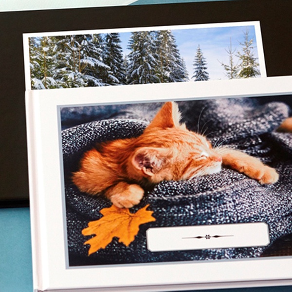 Einfache Gestaltung per Drag-and-Drop mit verschiedenen Farben und Modellen zur Auswahl für ein professionell gebundenes Hardcover