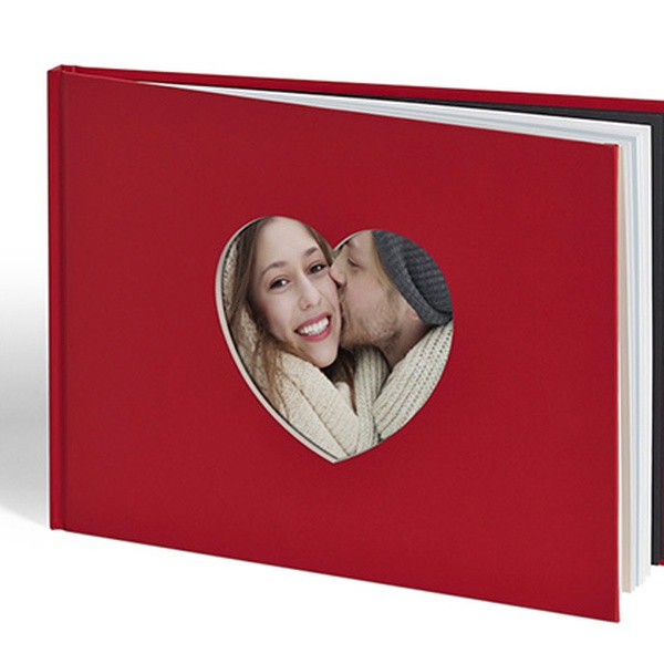 Selbst zu gestaltendes Album im großzügigen DIN A4 Format mit Sichtfenster in Herzform auf dem Cover