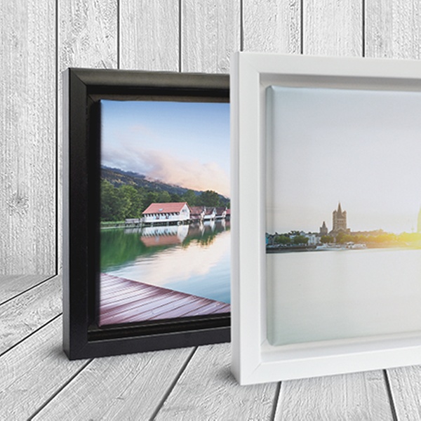 Schattenfugenrahmen in Holzoptik vermittelt den Eindruck von einem frei schwebenden Bild