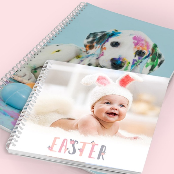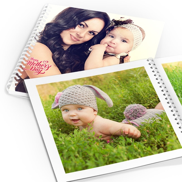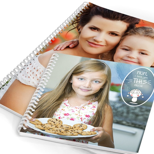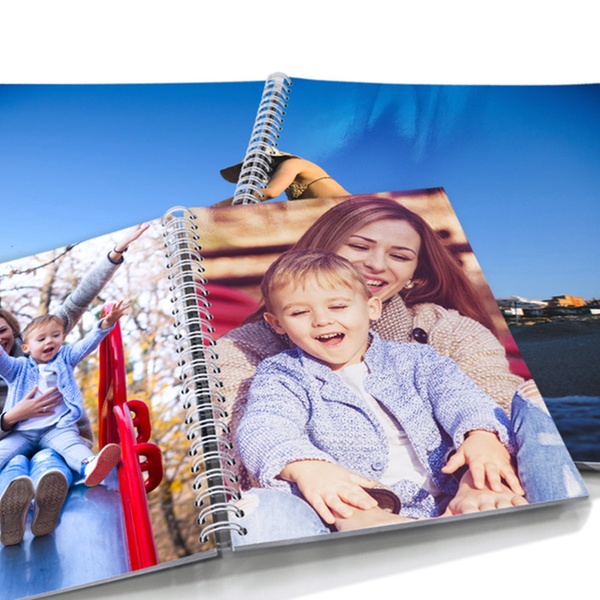 Praktisches, leicht transportables Fotobuch mit Spiralbindung und Vinyl-Einband im Format 20 x 20 oder A4 und mit 20, 40 oder 60 Seiten