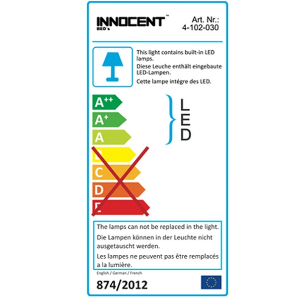 So, wie nach Schillers Wilhelm Tell die Unschuld im Himmel einen Freund hat, findet das aufsehenerregende Innocent Bett auf Erden unzählige Liebhaber. Beim für himmlischen Schlaf schwungvoll designten Modell „Look“ fließt die wellenförmige Kontur des mit Kunstleder (Schwarz, Weiß) oder Stoff (Grau) ummantelten Korpus vom Kopfteil dezent zum ebenerdigen Fußteil. Zwei integrierte LED-Lampen am Kopfende spenden Licht zum Lesen vor dem Einschlafen.