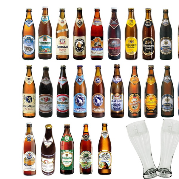 - Inhalt: Schneider Weissbier Original, Hacklberg Jacobi Weissbier hell, Hohenthanner Weissbier hell, Wieninger Hefe-Weißbier hell, Wolferstetter Export Hefe-Weizen, Aldersbacher Kloster Weisse Hell, Aldersbacher Kloster Weisse Dunkel, Huber Weißbier hell, Huber Weißbier dunkel, König Ludwig Weißbier hell, König Ludwig Weißbier dunkel, Arcobräu Weissbier dunkel, Arcobräu Weissbier hell, Grünbacher Altweizen, Hornecker Weißbier hell, Hornecker Weißbier dunkel, Erhartinger Weisse hell, Graf Arco Weissbier hell, Graf Arco Weissbier dunkel, Gutenberg Hefe-Weißbier hell, Franziskaner Weissbier hell, Löwenbräu München Weissbier hell, Erdinger Weissbier hell, Hohenthanner Kloster Weisse hell, HB München Weißbier hell