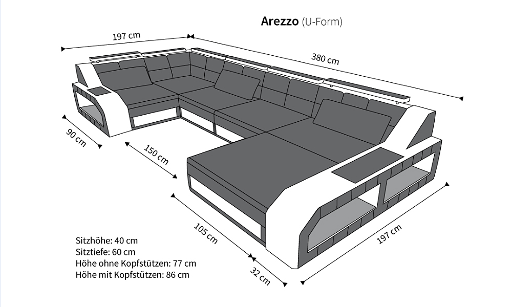 Wohnlandschaft Arezzo in U-Form:
