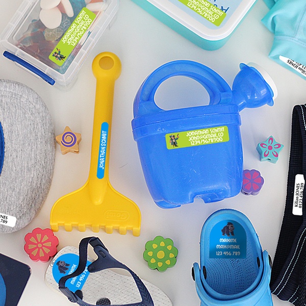 Megapack enthält: mehr als 200 personalisierte Namensaufkleber und Armbänder