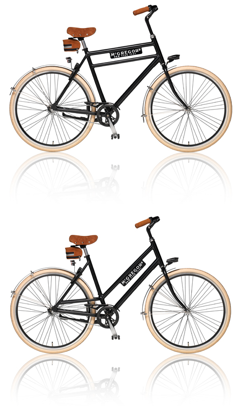 Das Vintage Bike von McGregor präsentiert sich dank Retro-Design im Stil der New Yorker 20er Jahre als ganz besonderes City-Rad. Als Herren- und Damenmodell erhältlich, ist das in limitierter Auflage detailverliebt gestaltete Rad das ideale Transportmittel für den Alltag oder entspannte Touren in der Freizeit. Puristisches Design trifft beim Vintage Bike auf eine hochwertige Ausstattung mit mattschwarzem Aluminium-Rahmen, cremefarbenen Reifen, drahtlosen Designerleuchten und Komfortsattel und Lenkung, die in ihrer Höhe angepasst werden können. Der Fahrradständer und die Rücktrittbremse sowie ein integriertes Fahrradschloss sorgen dafür, dass das Bike im Alltag zum praktischen Begleiter wird, wobei sich in der Premium-Satteltasche mühelos Handy, Schlüssel und Co. transportieren lassen.