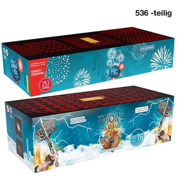 Feuerwerkssortiment 8: Systemfeuerwerk mit 1x Thor’s Hammer. Komplettfeuerwerk Verleitet mit 1x Festivalbox 7 (Komplettfeuerwerk) Maximal Power. Systemfeuerwerk-Sortimente mit Wikinger Koll. (11er-Sortment) Best of.