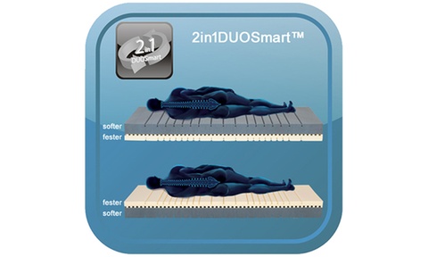 - 2in1DUOSmart™-Kaltschaumkern mit softeren (H2) und festeren (H3) Liegekomfort in einer Matratze