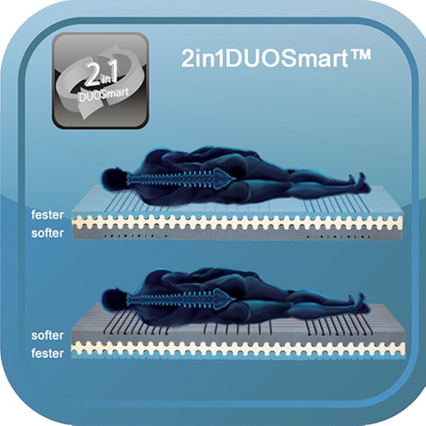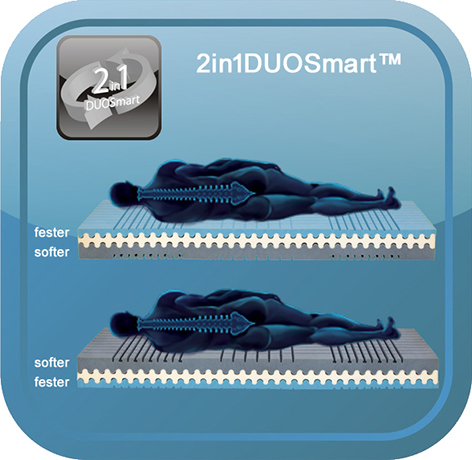 Der integrierte hochelastische 2in1DUOSmart™ Kern liefert mit dem Zoom-System eine präzise Flexibilität und aktive Unterstützung auf der gesamten Liegefläche: