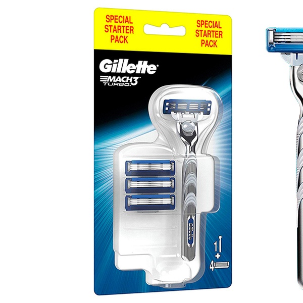 Gillette Mach 3 Turbo Rasierer mit 4er-Pack Ersatzklingen