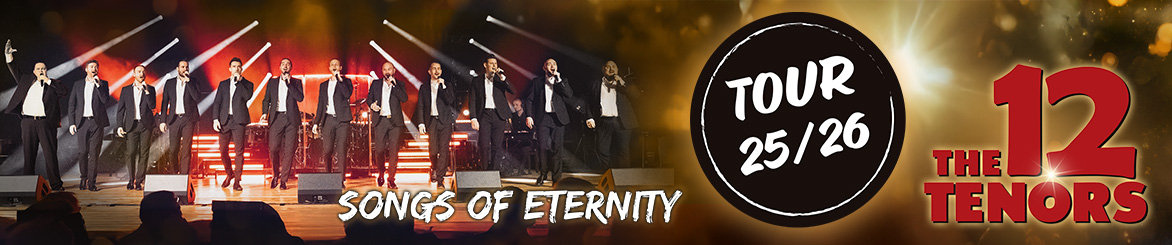 In ihrer aufregenden neuen Show "Songs of Eternity" nehmen sie das Publikum mit auf eine unvergessliche Reise durch ikonische Lieder. Begleitet von einer Live-Band und umrahmt von einer spektakulären Lichtshow zelebrieren die 12 Tenors die Vielseitigkeit der Musik in all ihren Facetten.