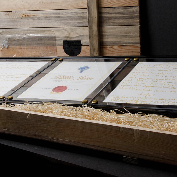 Der handgeschriebene Originaltext zu dem weltberühmten Song wurde exklusiv im Steindruckverfahren auf hochwertiges Büttenpapier gedruckt, staubgeschützt hinter Acrylglas versiegelt und in einen extra für dieses Objekt entworfenen, handgearbeiteten 3D-Bilderrahmen eingefasst. Versandt wird dieses faszinierende Stück Musikgeschichte stilecht und sicher verpackt in einer rustikalen Holzkiste. Fans haben nun die Möglichkeit, eine dieser streng limitierten Lithografien mitsamt Wachssiegel und Echtheitszertifikat zu gewinnen – wer sich jedoch nicht auf Fortuna verlassen möchte, kann eines der Sammlerstücke auch direkt kaufen.