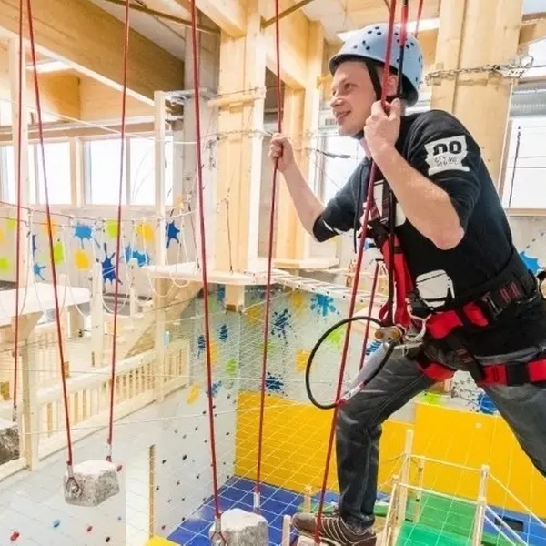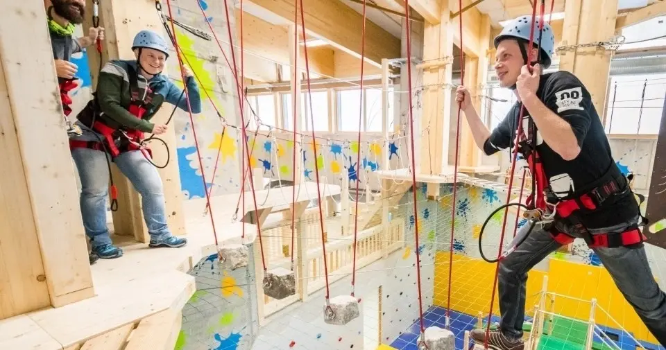 Im Indoor-Hochseilpark der Fundorena wartet Nervenkitzel in luftiger Höhe. Gesichert mit Seil und Klettergurt balancierst du über schwebende Elemente und spürst das echte Abenteuergefühl. Acht abwechslungsreiche Parcours mit regionalem Schwarzwald-Flair machen jede Runde zu einem neuen Erlebnis.