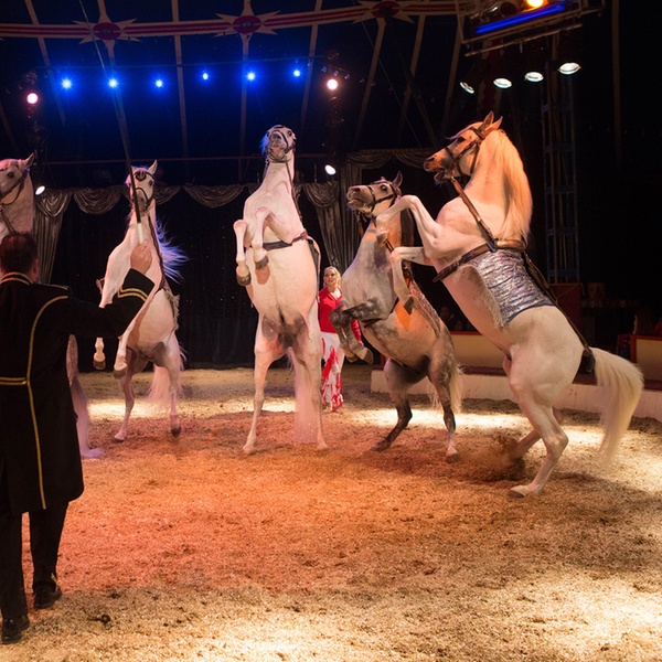 Weihnachtscircus im festlich dekorierten Zelt mit Schlangenmädchen, Rola-Rola-Artisten, Clowns und vielem mehr
