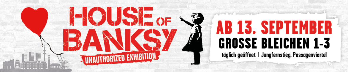 Ab September kannst du in Hamburg die Pop-Up-Ausstellung „House of Banksy – An Unauthorized Exhibition“ erleben. Auf 1.500 Quadratmetern am Jungfernstieg erwarten dich über 150 Motive des berühmten Street-Art-Künstlers. Erlebe Banksys Kunst hautnah und tauche in aktuelle gesellschaftliche Themen ein.