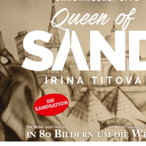 Erlebe die magische Sandreise von Irina Titova, der gefeierten „Queen of Sand“, 2026 zum letzten Mal live in Deutschland! Mit ihrer Erfolgsproduktion „In 80 Bildern um die Welt“ entführt sie dich auf eine poetische Weltreise voller Sehnsucht, Entdeckung und Magie. In 80 beeindruckenden Sandbildern reist du von New York über die Wüsten Afrikas bis zu den Pyramiden Ägyptens, streifst durch Paris, Venedig, Indien und über das Dach der Welt. Jede Szene entsteht live auf einer beleuchteten Glasplatte und wird gleichzeitig auf eine Großleinwand projiziert – so erlebst du die Sandkunst hautnah und in beeindruckender Dynamik.
