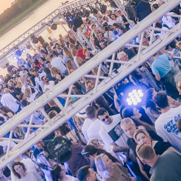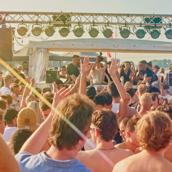 Tanze unter freiem Himmel zu House Beats und genieße dabei erlesene Weine mit Blick auf die Düsseldorfer Skyline
